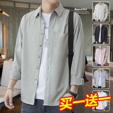 正品衬衫外套男秋季韩版潮流boxy纯色上衣青少年时尚
