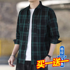 男装正品官店格子衬衫男长袖夏季韩版潮流简约外套上