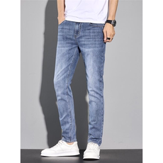 牛仔裤男士夏季弹力直筒九分裤弹力修身小脚9分男裤子